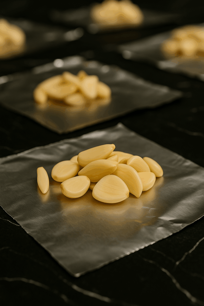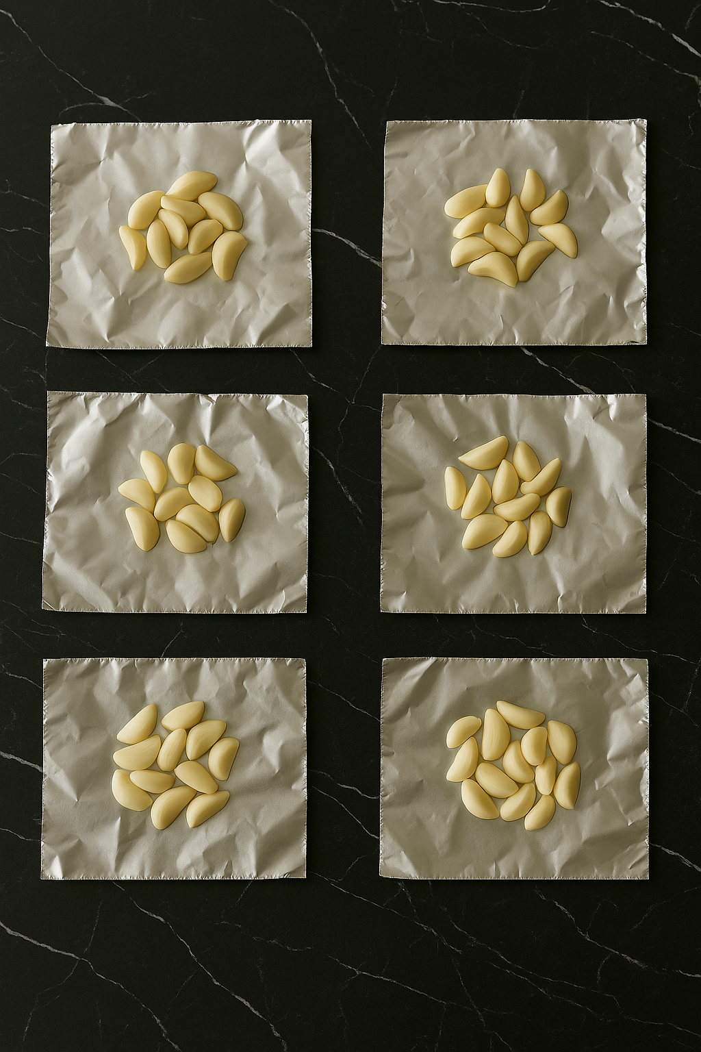 - Add a heaping handful (about 20) garlic cloves to the center of the tin foil.